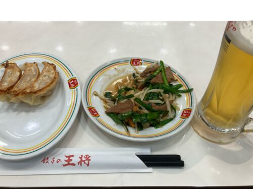たまにはガッツリ中華もね、ということで、今日のお店は中華の王道、餃子の王将。平日のランチです。 歳を重ねるごとに食が細くなってきた私に中華一人前を美味しく完食できるのか? 安心してください。食べきれますよ。 ニラレバ、餃子、ビール 王将にはジ…
